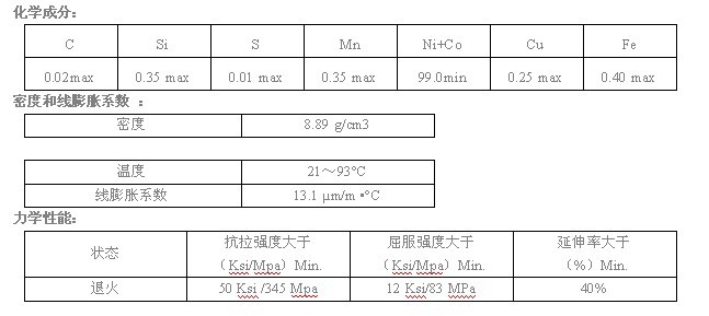 * 一种低碳材料(最大0.02%),是UNS N02200的低碳环保版本号,一种体心构造的固溶处理铝合金。